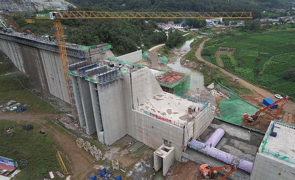 鲁谼山水库项目建设现场,建设者们在各个作业面坚守岗位。